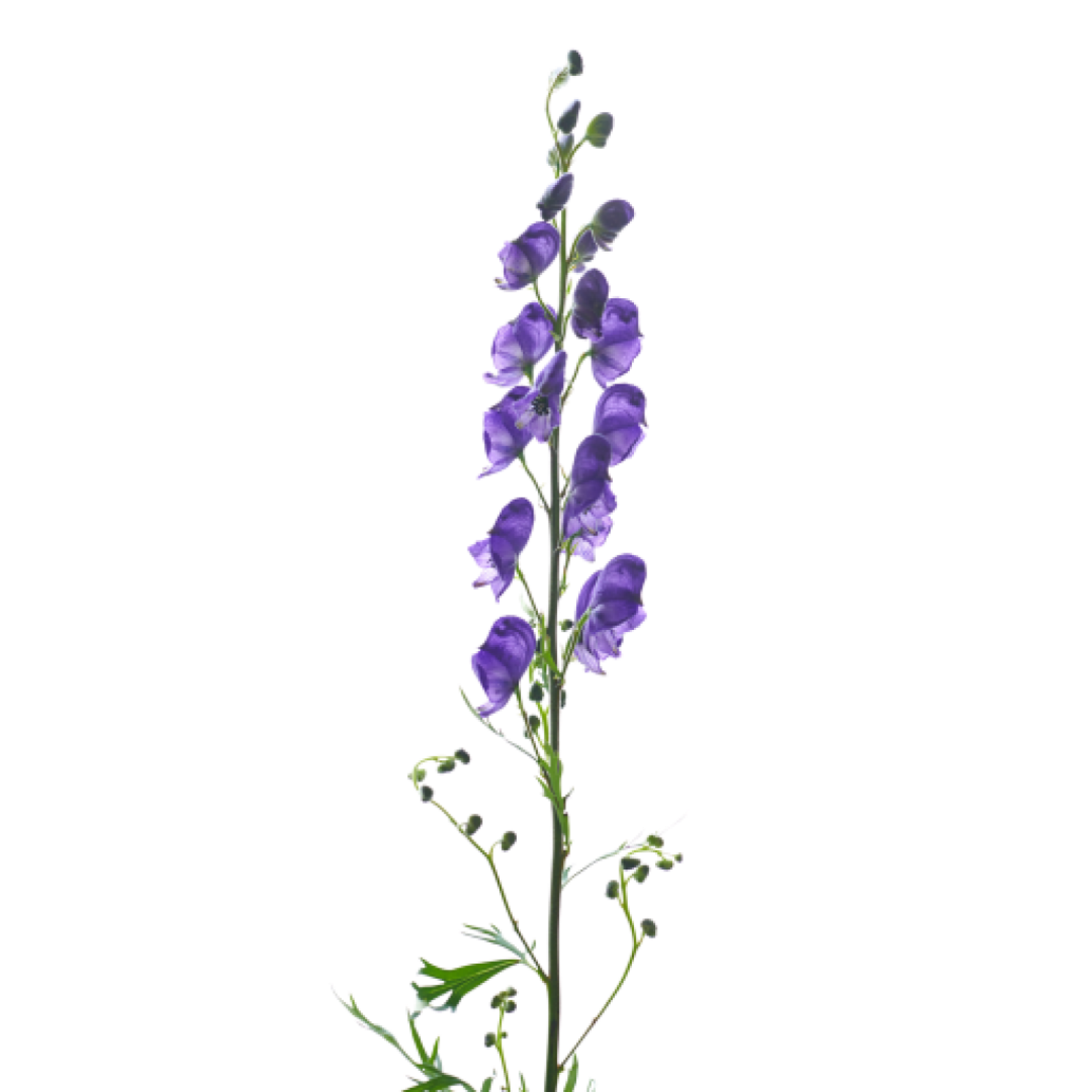 Med sin karakteristiske blomsterform er de enkelte kronblade formet som en munkehætte. Med smukke hvide og blå/lilla farver tilfører Aconitum et kraftfuldt element til enhver indretning.