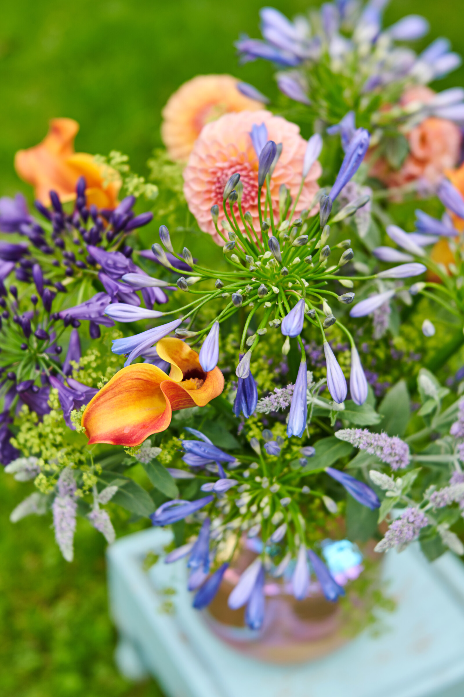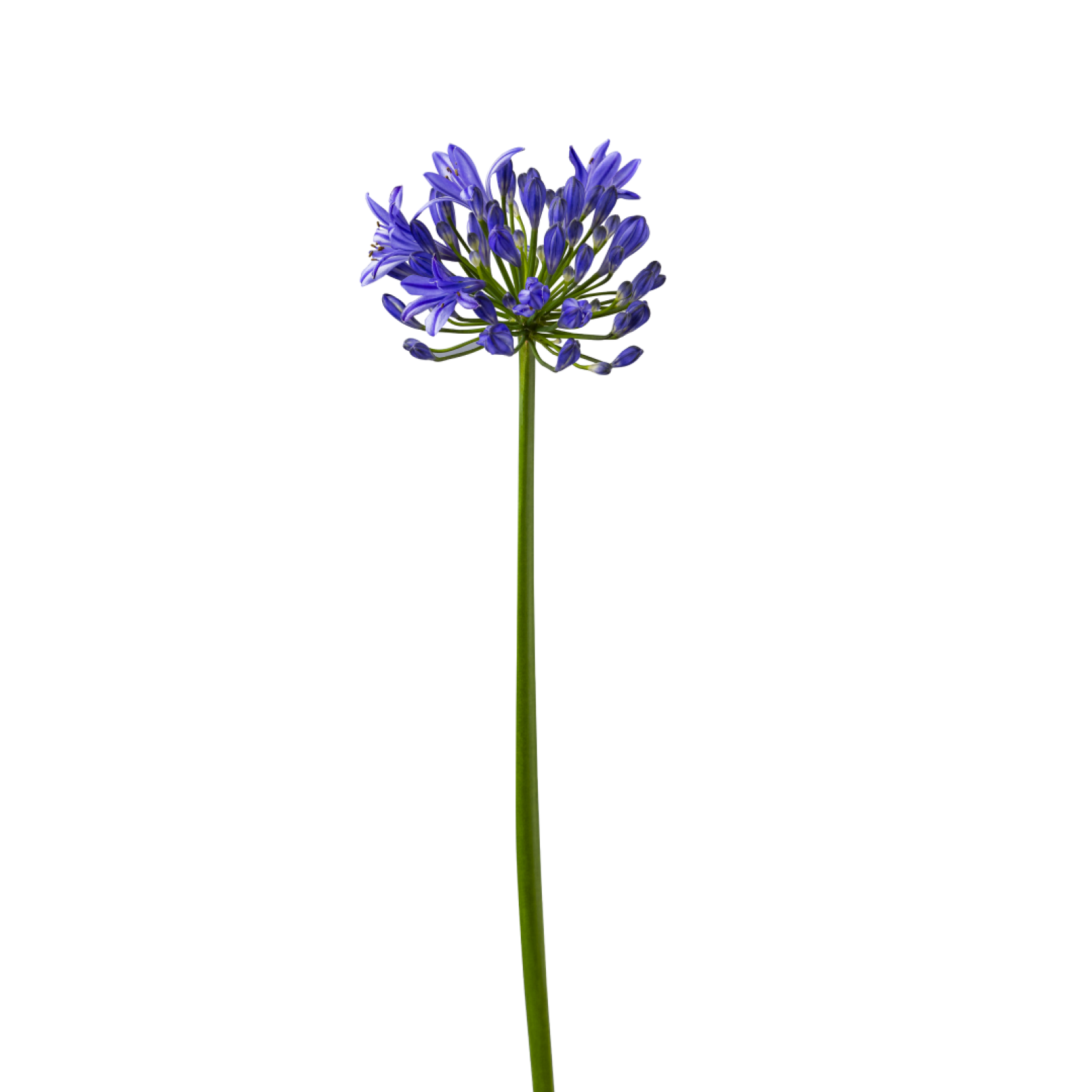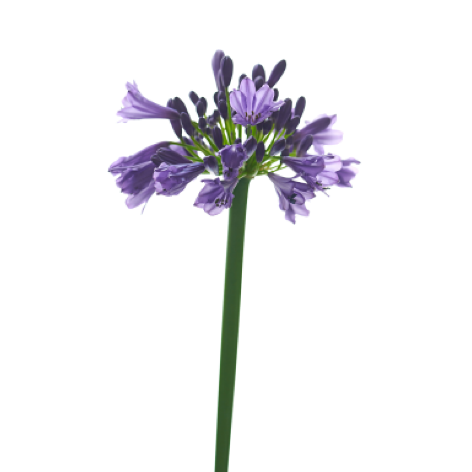 Agapanthus er normalt lyseblå eller lilla i farven. Andre sorter omfatter hvide, pink eller stribede blomster.
