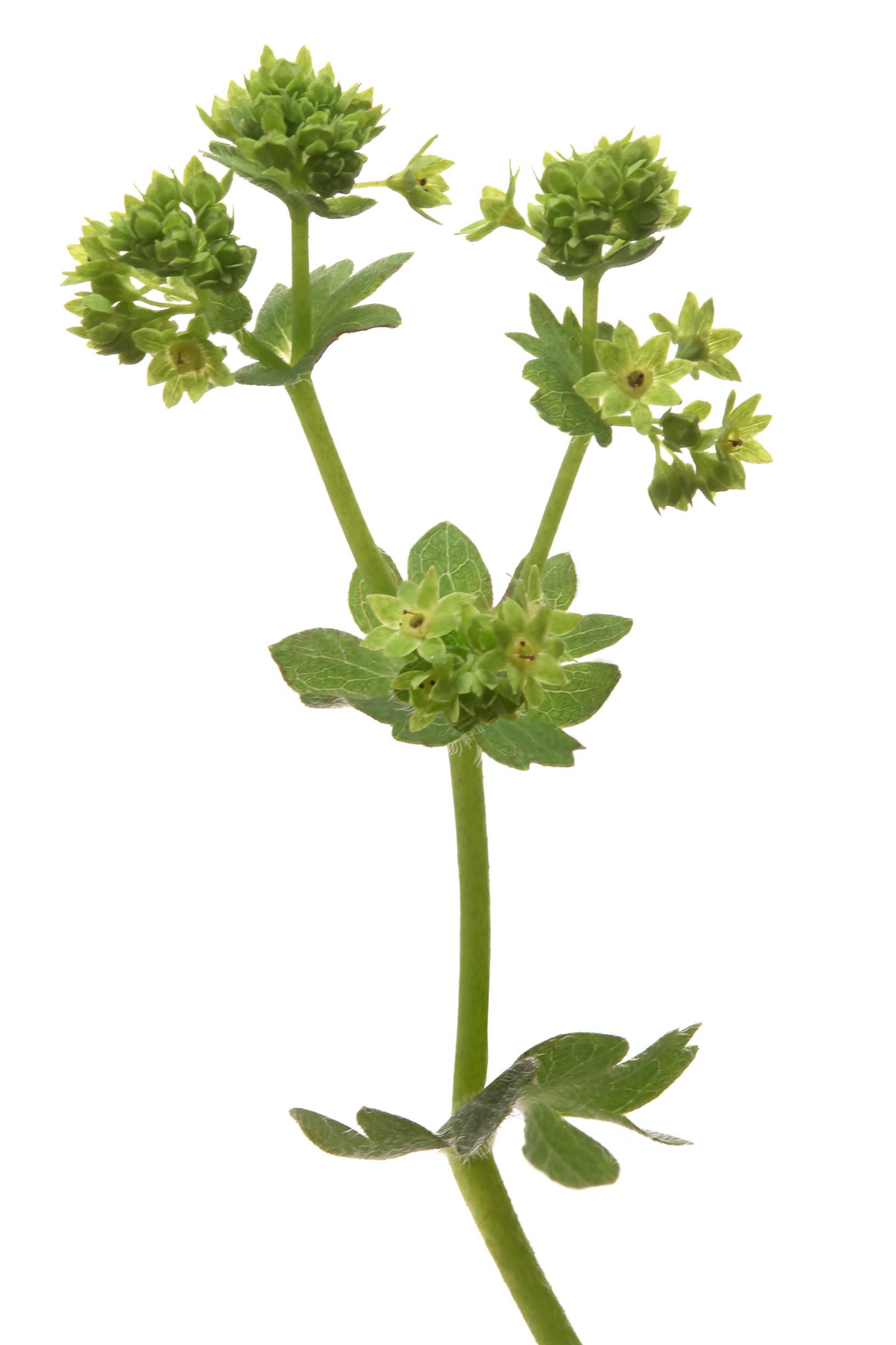 Alchemilla har et yndefuldt udseende på grund af sine forgrenede stængler med små, gulgrønne kronblade, der mødes i små blomsterhoveder.