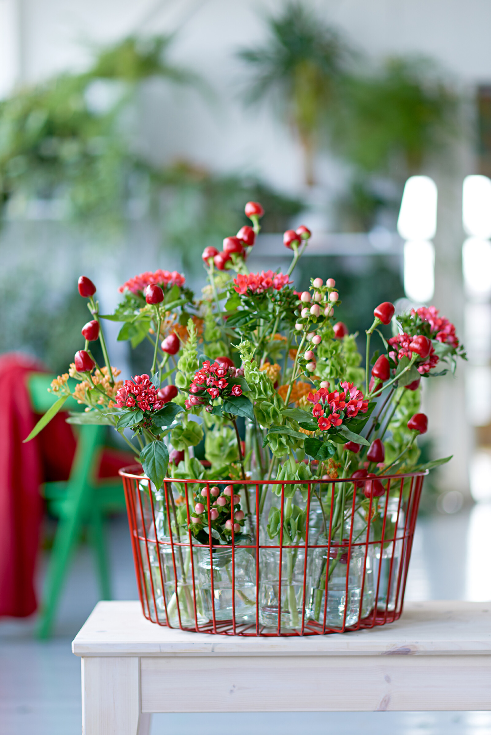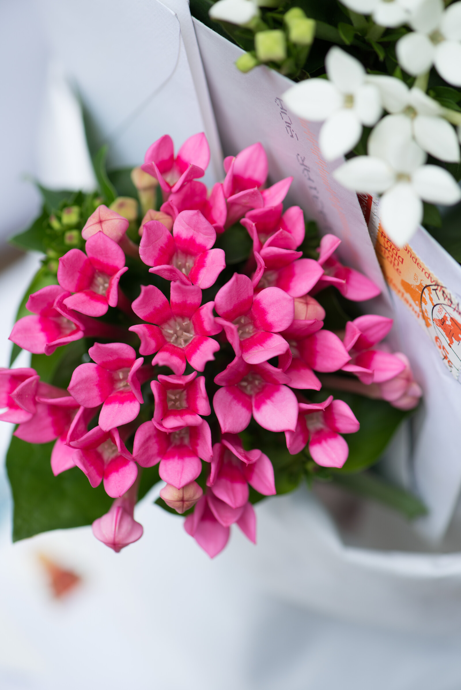 Bouvardia fås i forskellige farver, f.eks. hvid, pink, rød og laks.