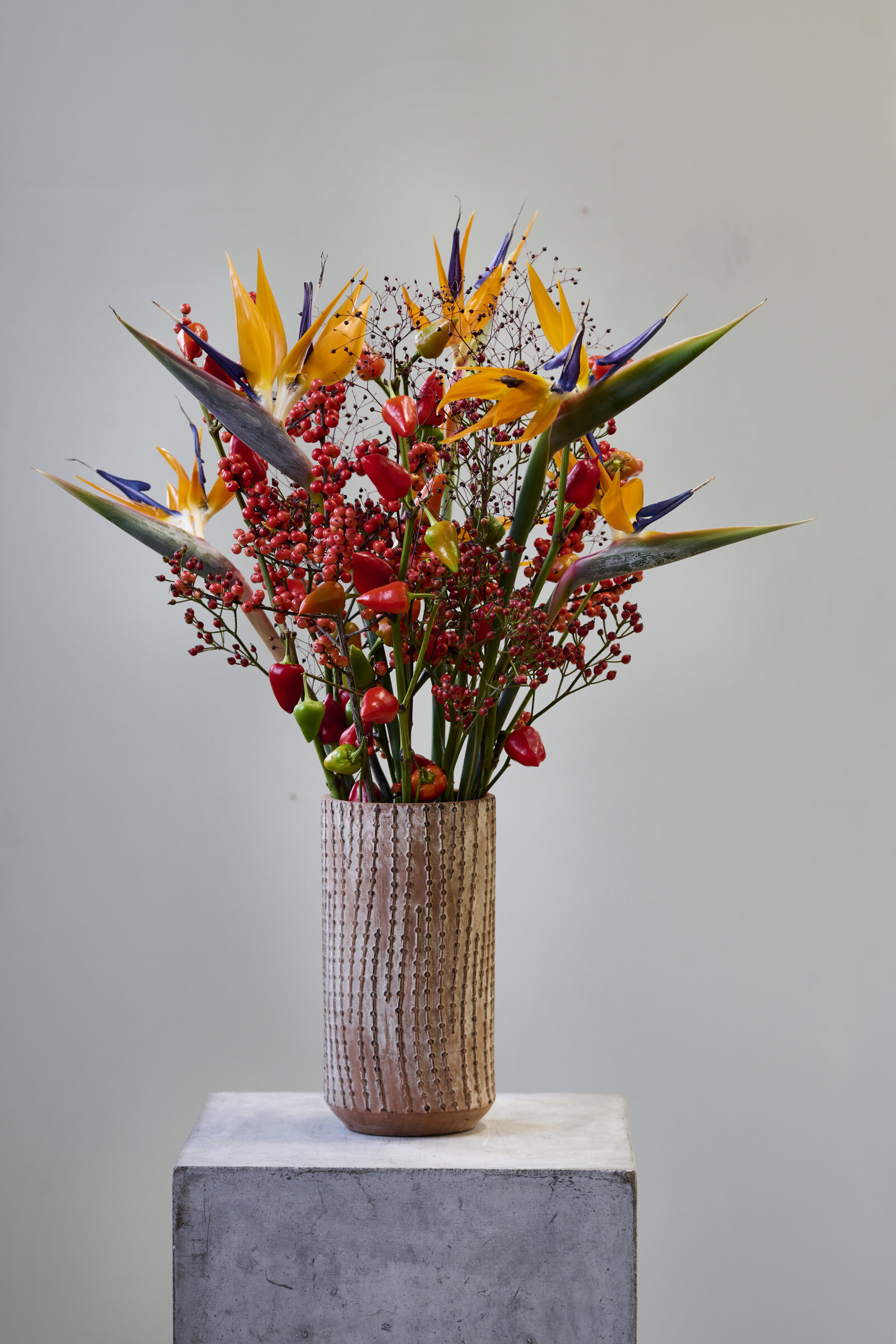 Capsicum er bedre kendt som peber. Omkring jul og i efterårsbuketter tilføjer disse grene et robust element.