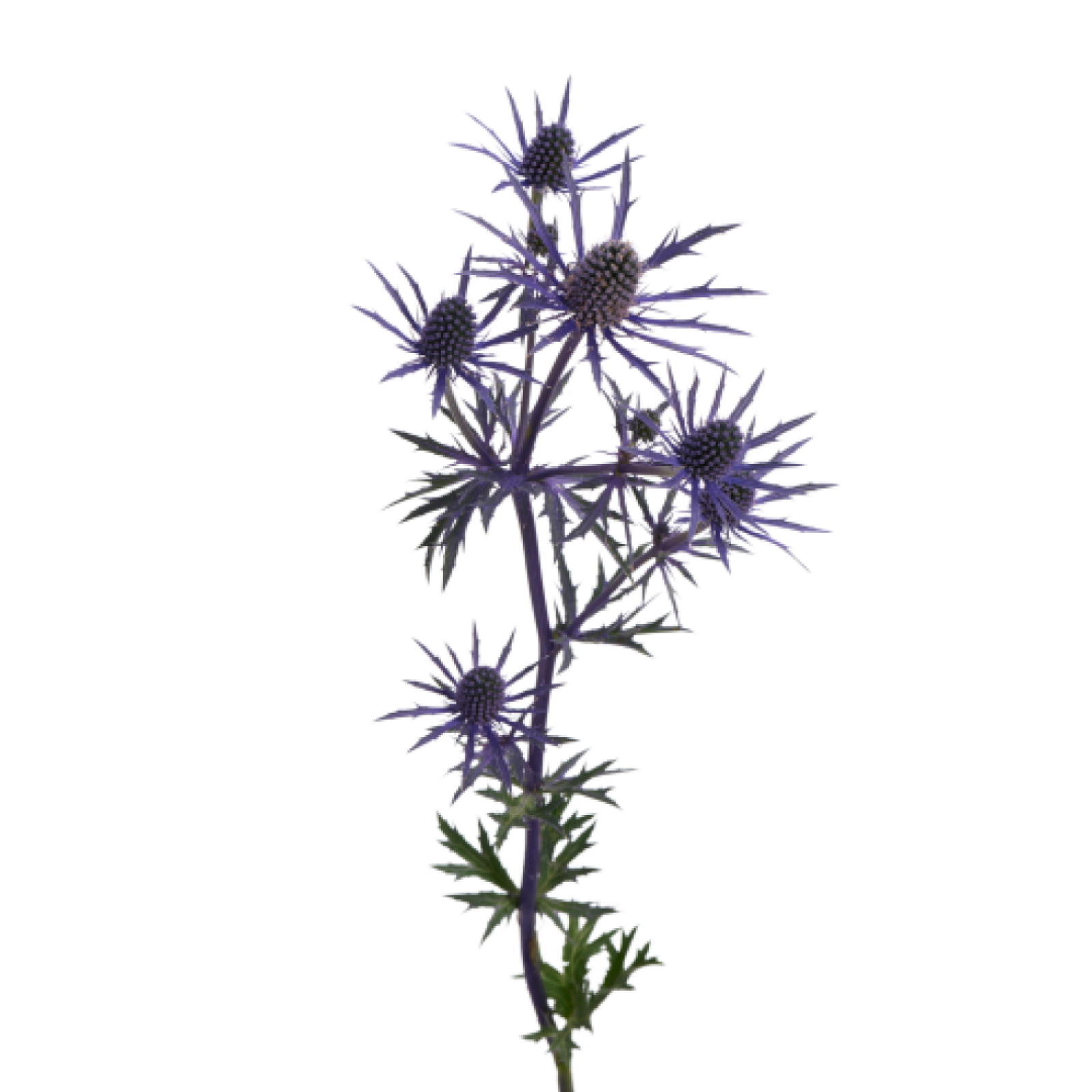 Eryngium fanger altid øjet med sine stikkende, kegleformede blomsterhoveder og markante blå eller sølvfarvede nuancer. Det gør denne blomst til et ægte blikfang i en buket!