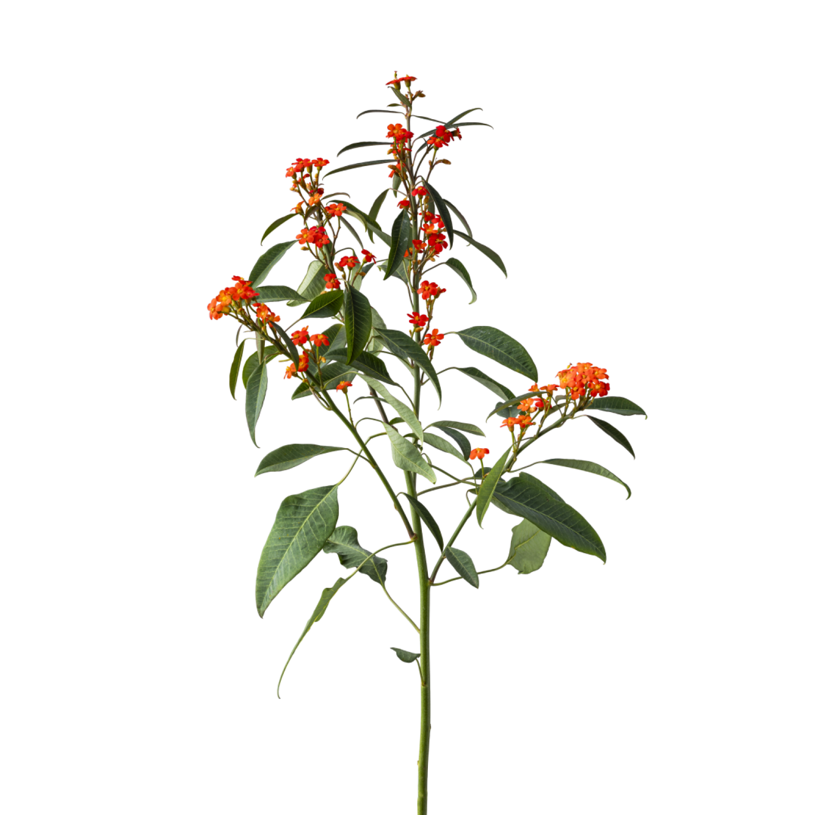 Euphorbia fås i forskellige farver, f.eks. hvid, gul, rød og orange.