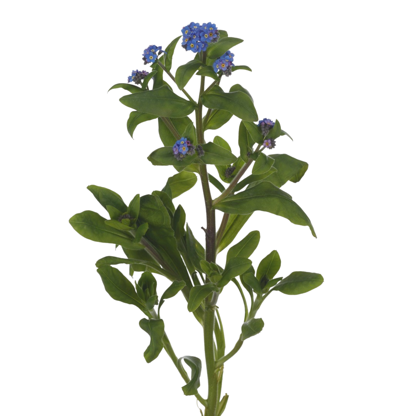 - Stilfulde applikationerMyosotis har smukke små blå og lyseblå blomster, der vokser i klynger på den forgrenede stængel.