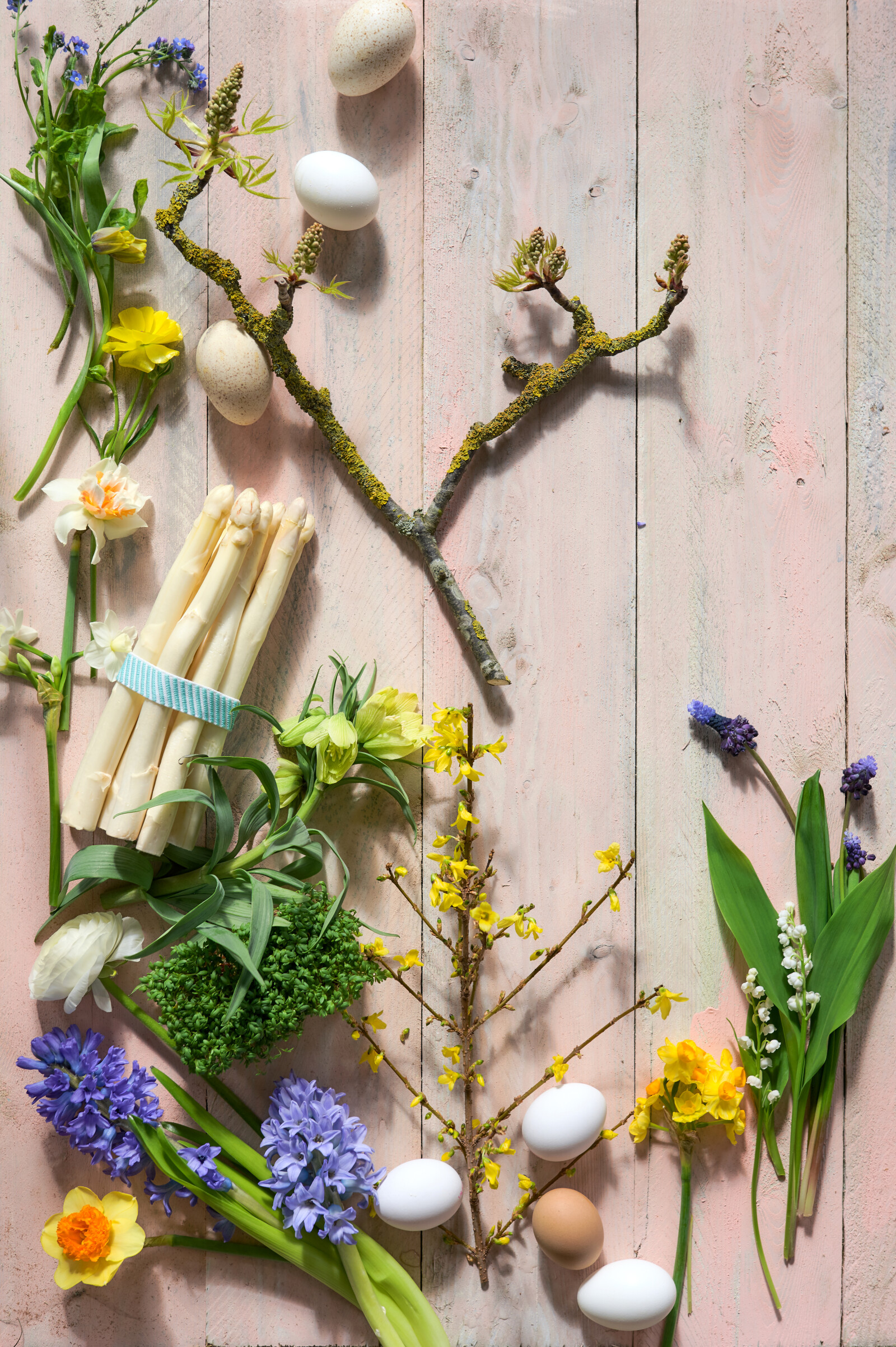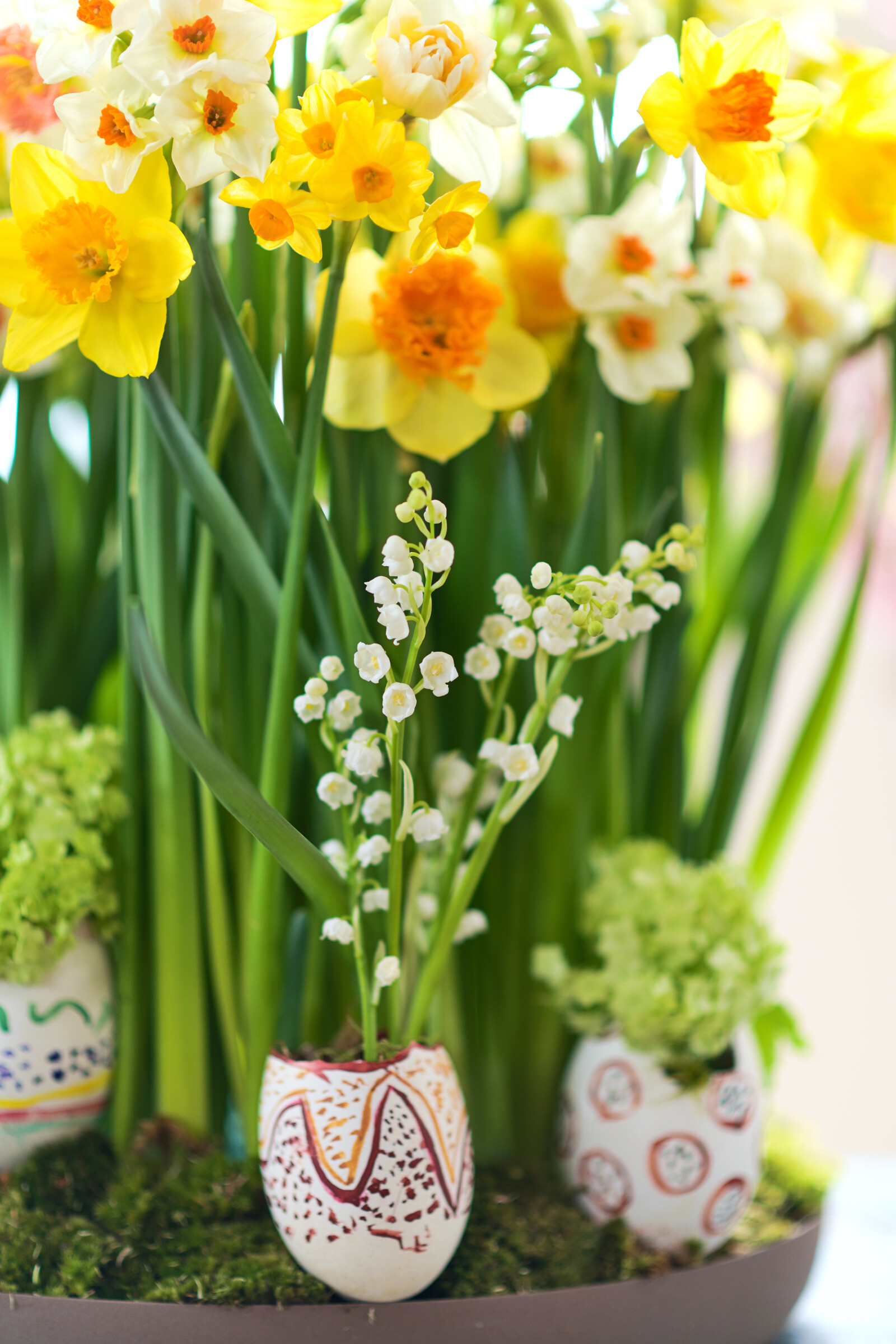 Narcissus fås i forskellige farver, f.eks. gul, hvid, orange og pink.