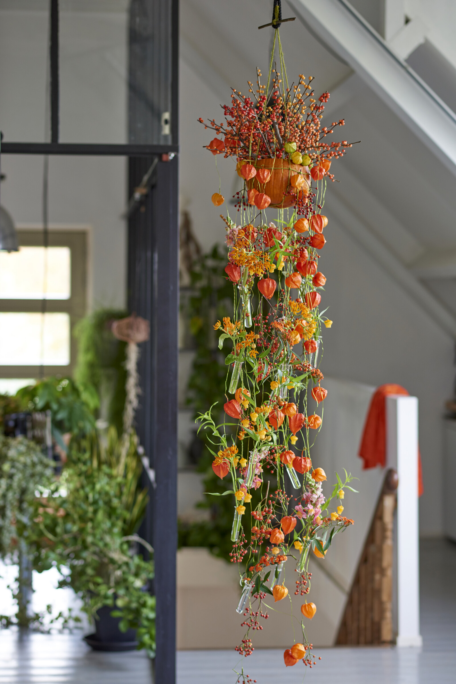 Med sine markante, papiragtige orange lanterner tilføjer Physalis et efterårselement til blomsterarrangementer, både friske og tørrede.