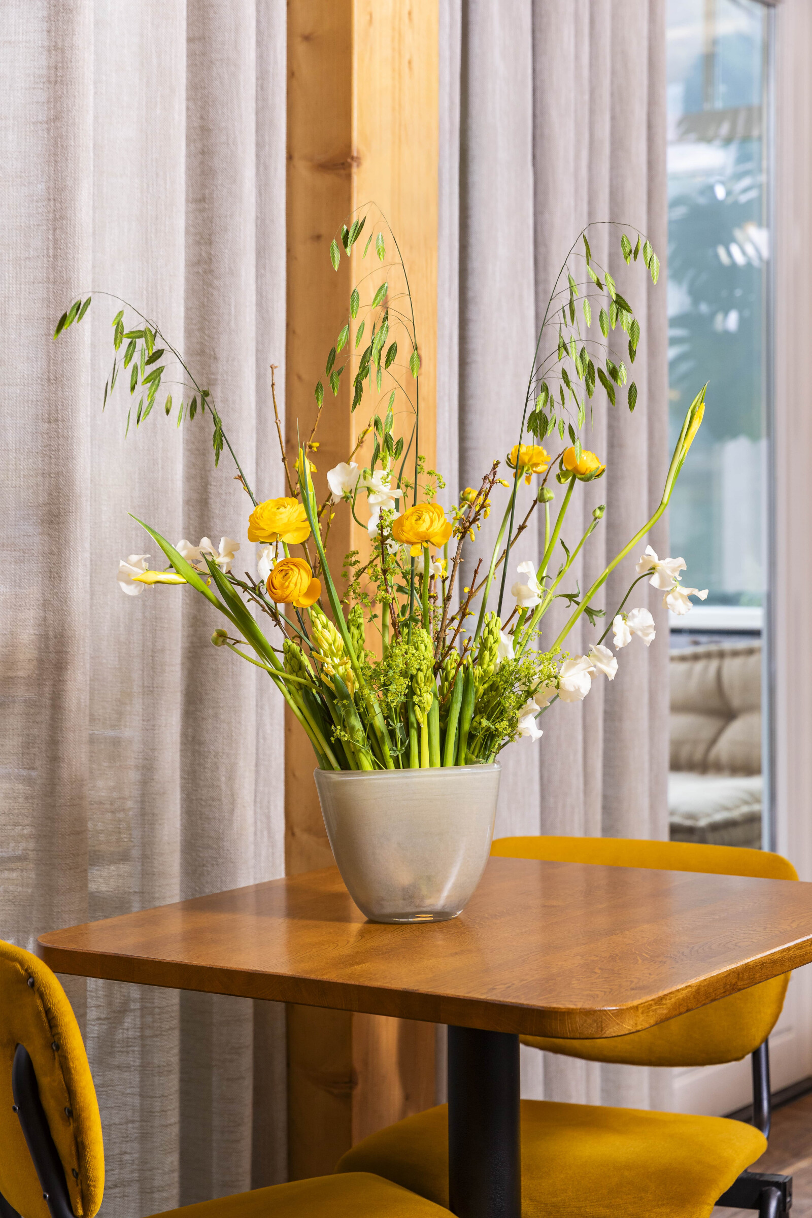 Ranunklen har karisma. Den har en slank, friskgrøn stilk, og blomsterne er farverige og sofistikerede med mange fine kronblade, der tilsammen danner frodige og fyldige blomster.