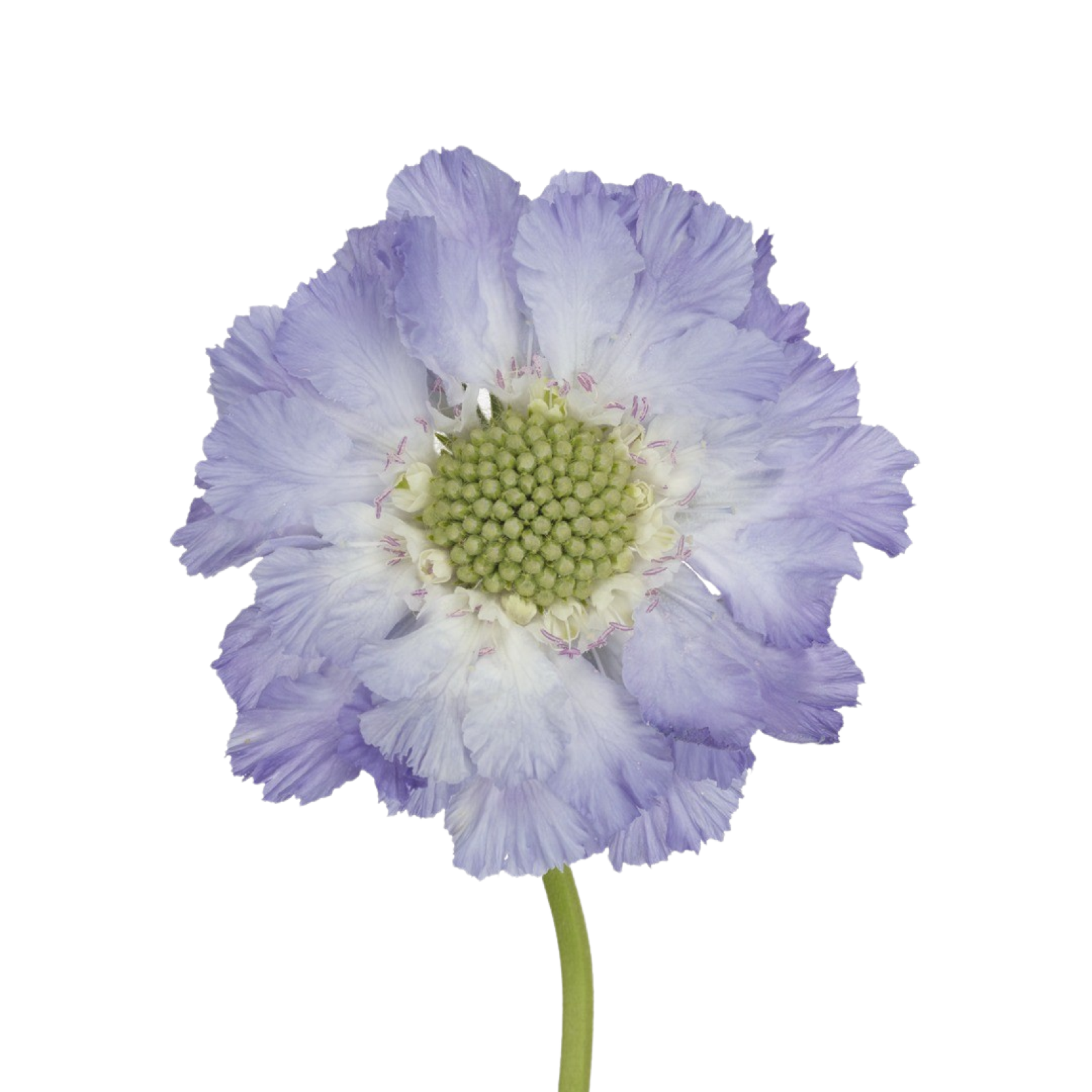 - Stilfulde applikationerScabiosa atropurpurea har en lang, slank stængel med en blomst med et kugleformet hjerte og en krans af kronblade omkring. Scabiosa caucasica har en lang, slank stængel med en blomst med et fladt hjerte og en krans af kronblade omkring.
