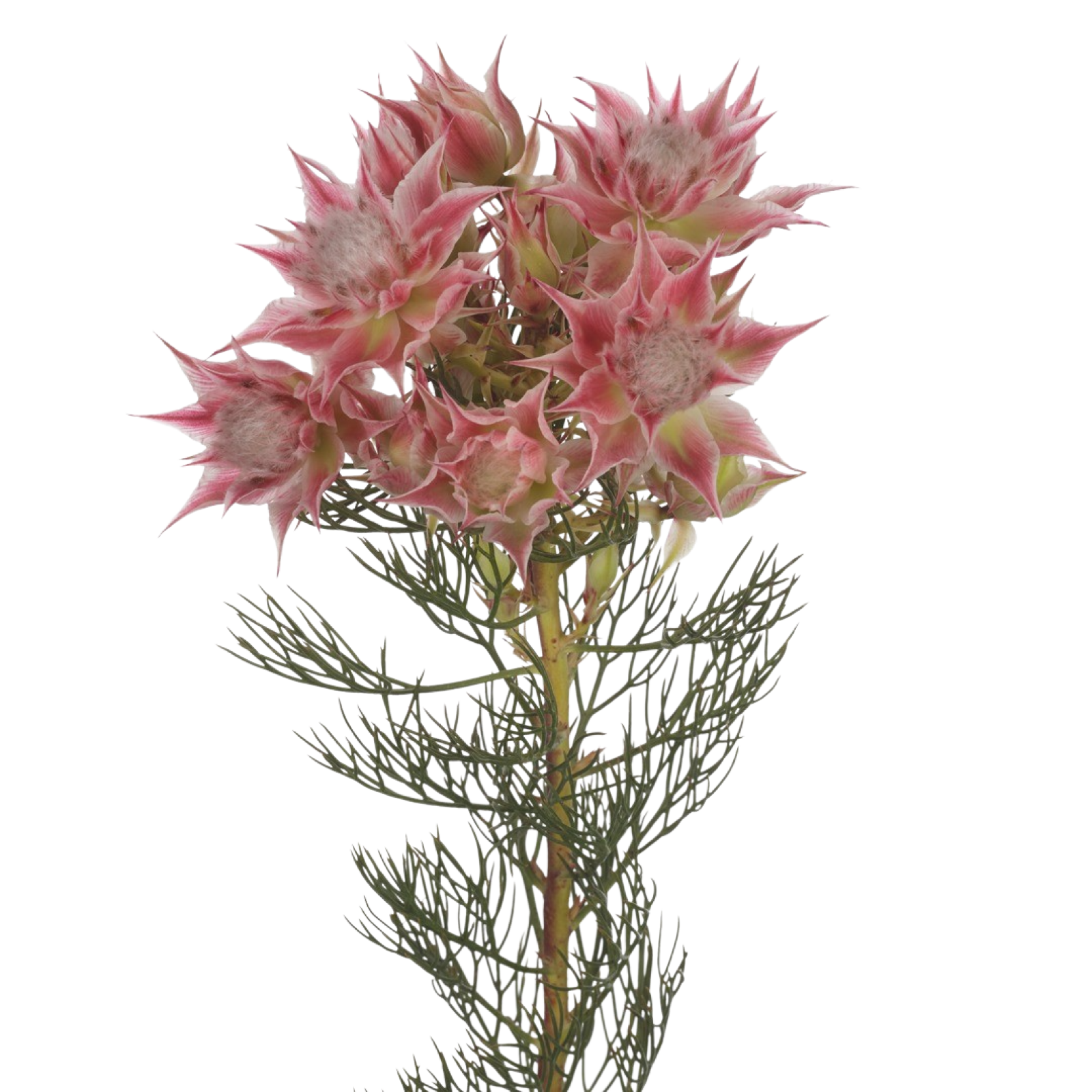 Serruria har elfenbensfarvede kronblade med lyserøde detaljer. I hjertet af blomsten er der små røde/pink kronblade.