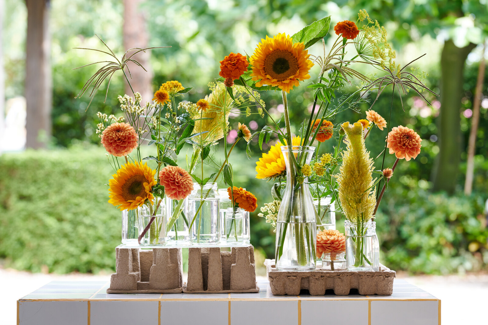 - Stilfulde applikationerMed sine levende farver og frodige blomster tilføjer Tagetes et muntert og farverigt element til enhver buket.